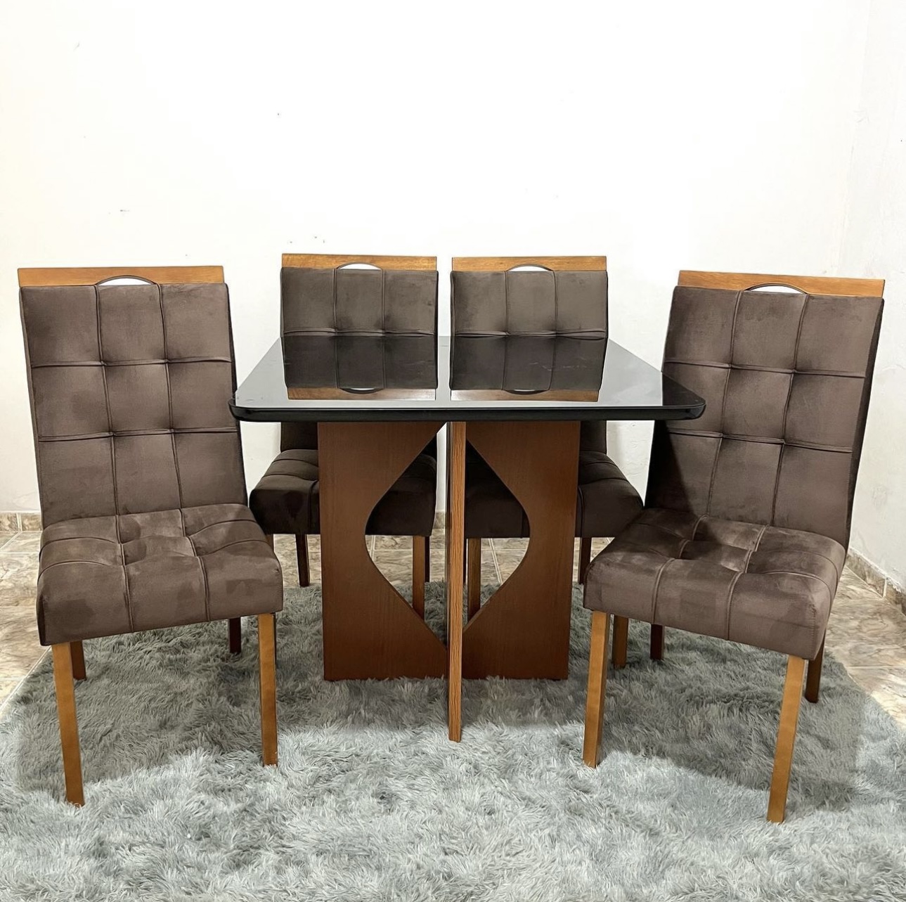 - A Mesa de Jantar Madri bordas boleadas com Vidro com 4 Cadeiras de Madeira é uma ótima escolha para sua sala de jantar.