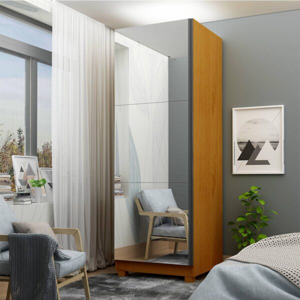 Sapateira Gold com Espelho, Côr Naturale, da Gelius Móveis, Medidas: Alt 2,255m Larg 0,63m Prof 0,553 Peso 59Kg, Estrutura 100% MDP, 1 Porta de Bater com Espelho (3 Lâminas) de 3mm, Puxador Perfil de Aço, 5 Pratleiras Internas e Pés Plásticos Incluso.