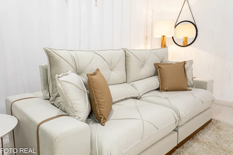 Sofá Retrátil Reclinável Gran Bello 2.00m Veludo Bege – D33 e Molas Ensacadas