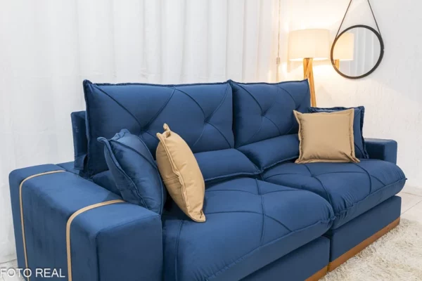 Sofá Retrátil Reclinável Gran Bello 2.30m Veludo Azul – D33 e Molas Ensacadas