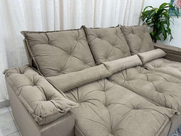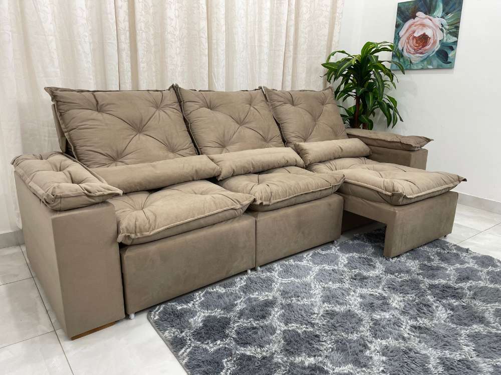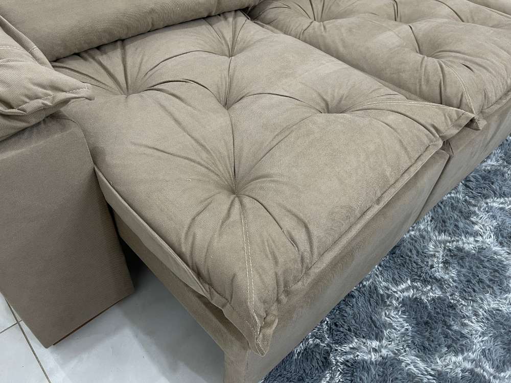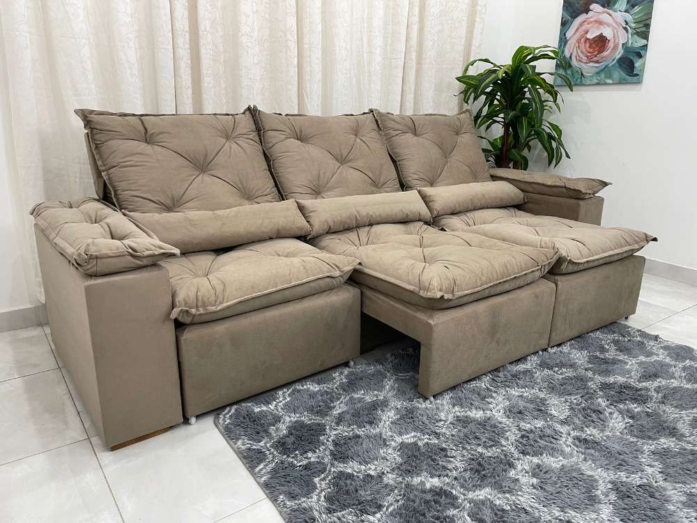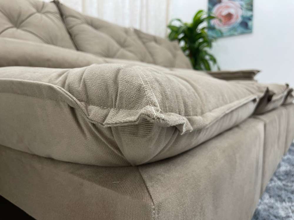 Sofá Retrátil Reclinável Grécia 2.70m – Bege Veludinho